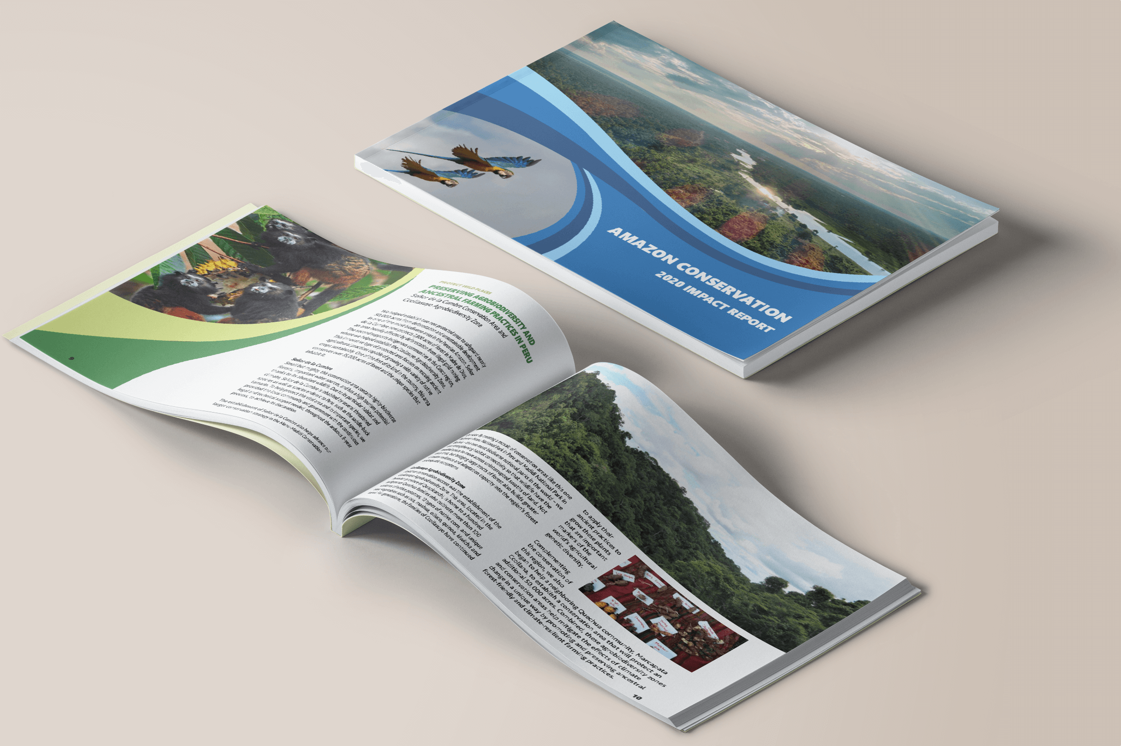 The creation, story writing, and design of this report was one of my major tasks as a Communications Associate at Amazon Conservation. I also coordinated the printing, and this report was then sent to all major donors and published to the organization's website.