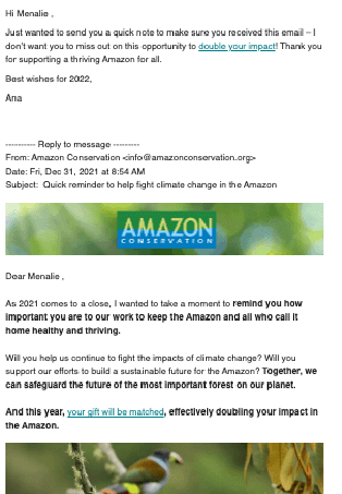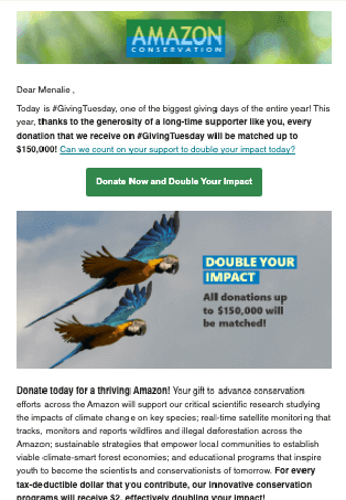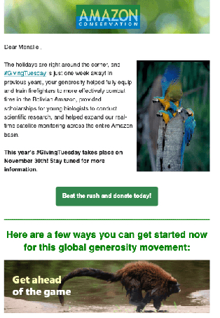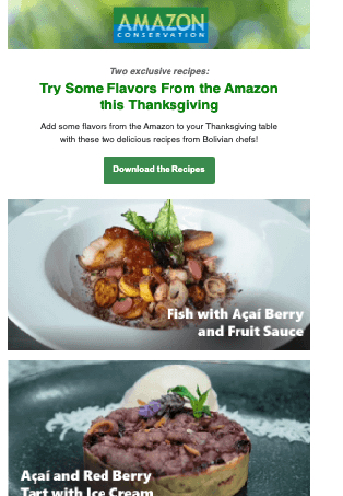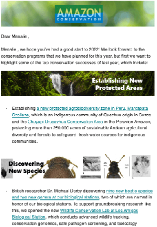 The goal of these e-mail newsletters was to promote Amazon Conservation's work, solicit donations, and increase interest in the organization.