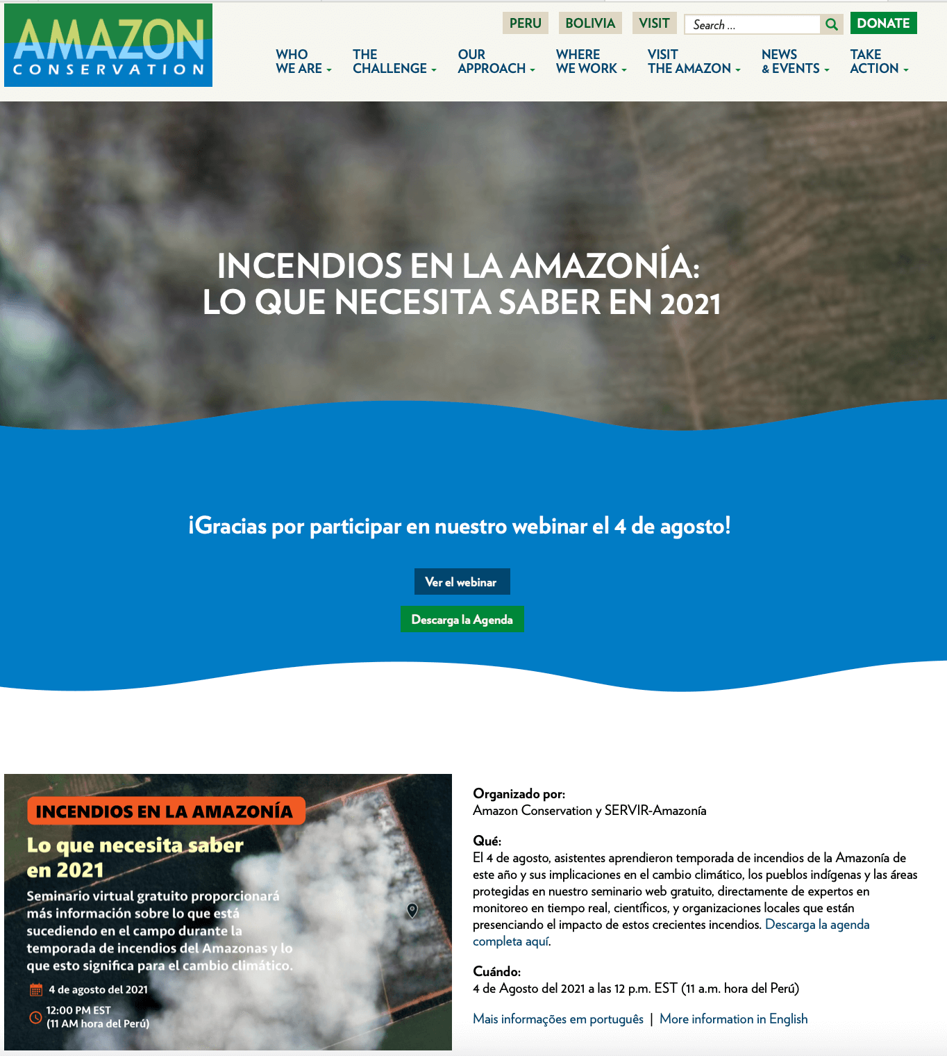 While at Amazon Conservation, I led the digital promotion, content creation, and technical coordination for high-visibility online events, including the Global Landscapes Forum and the Amazon Fires Webinar. These multi-language webinars reached global conservation audiences and featured experts across Latin America and beyond.