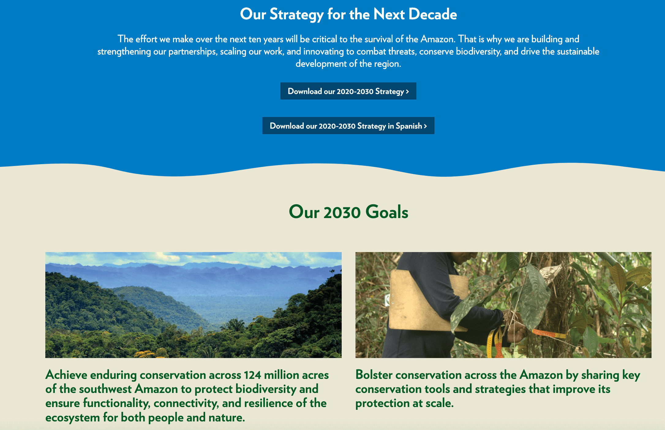 For their main website amazonconservation.org, I assisted in the migration, remediation, page designs, and layouts as the organization moved to a new platform. Pages and graphics I created included the events Page and associated webinars. Additionally, I wrote and updated key data points about the organization's work in the Amazon, including writing around 4 stories a month that I uploaded to their blog.