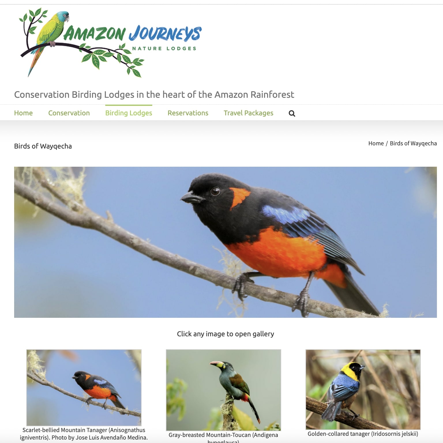 Amazon Journeys Birdwatching Website Page