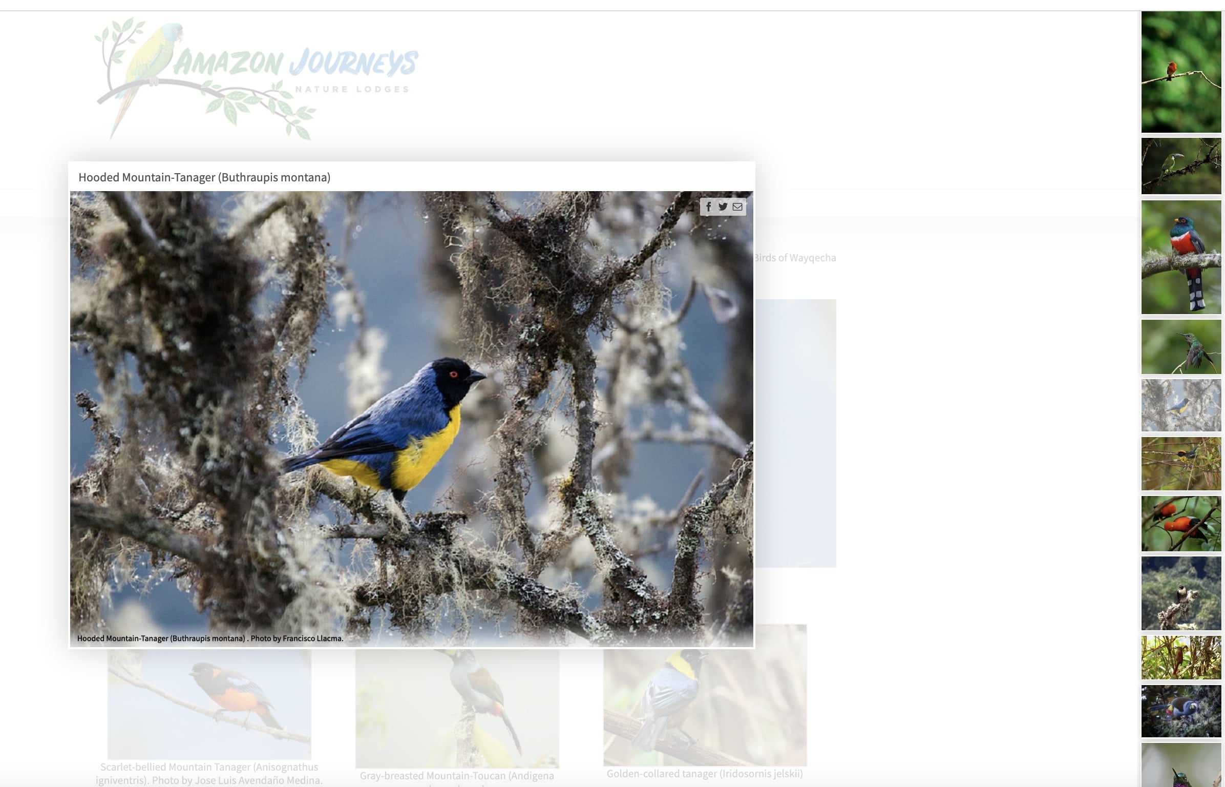 WebsiteThe organization had a tourism website called Amazon Journeys for birdwatching tourists. I would edit and update that site, below is an example of the 'lightbox' that I incorporated.