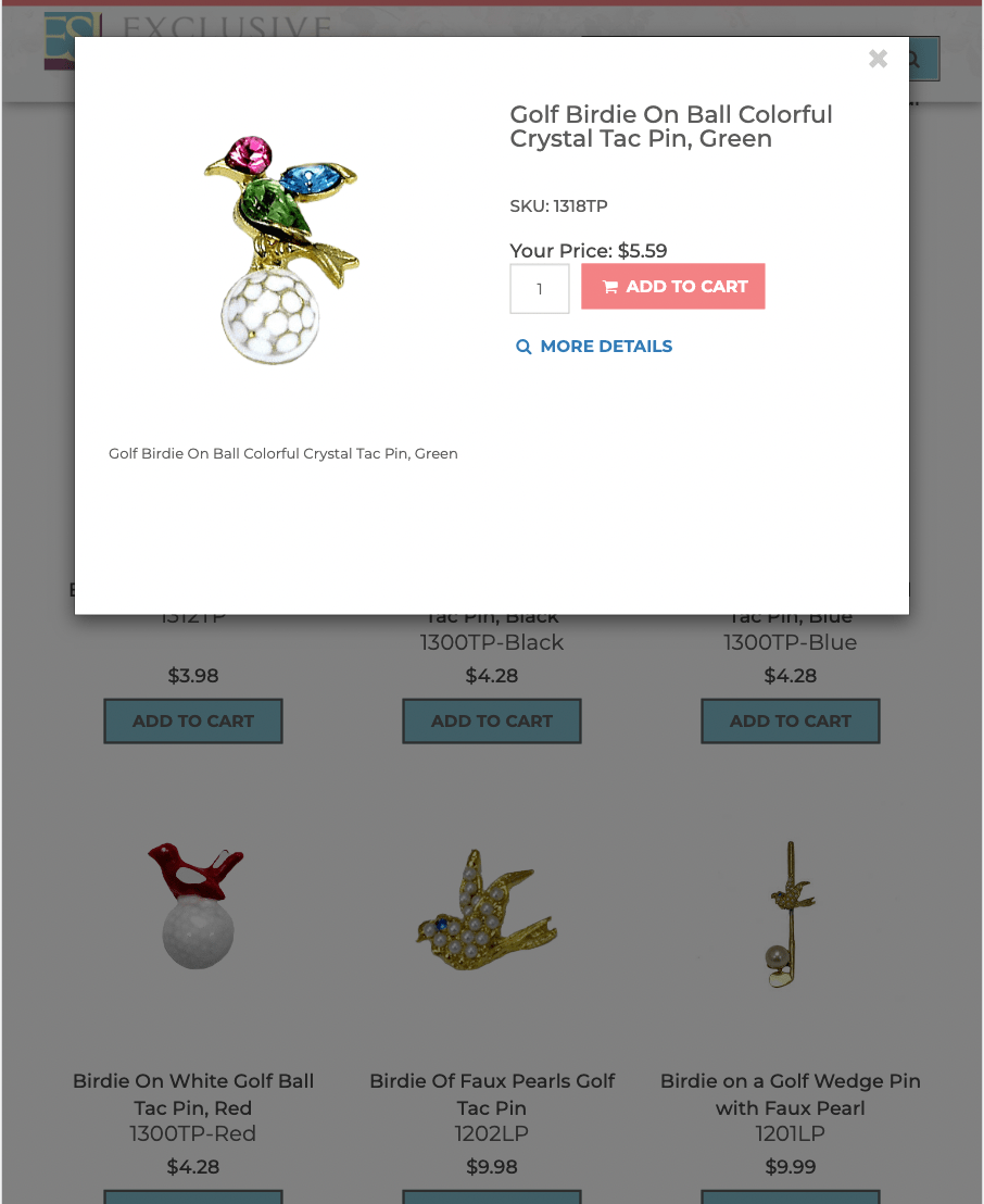 Exclusive Sports Jewelry Website, quick preview functionality