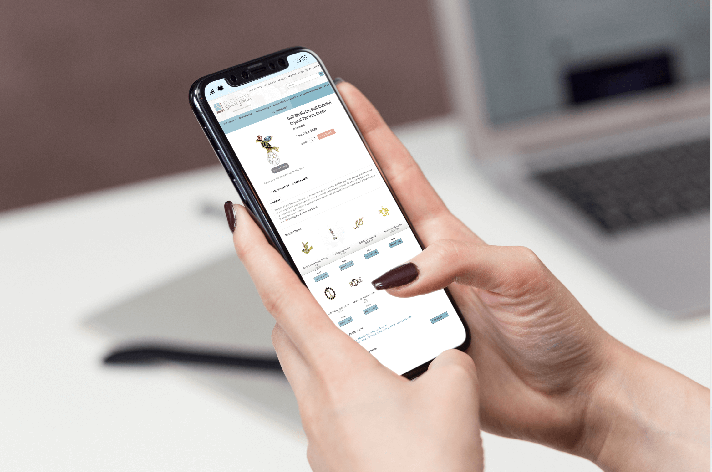 Exclusive Sports Jewelry website, mobile view